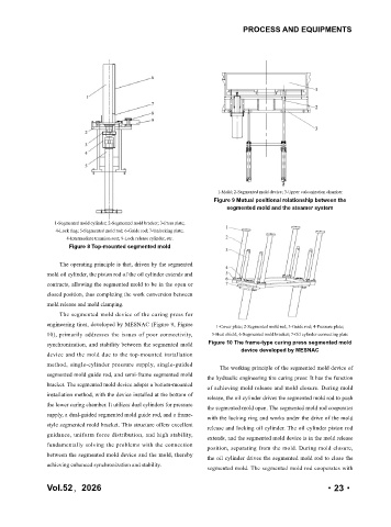 10), primarily addresses the issues of poor connectivity, 5-Heat shield; 6-Segmented mold bracket; 7-Oil cylinder connecting plate