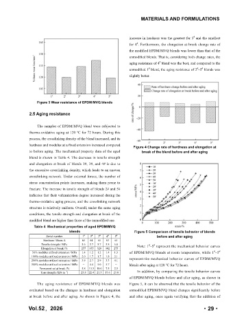 The aging resistance of EPDM/MVQ blends was Figure 5, it can be observed that the tensile behavior of the