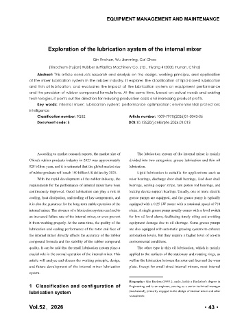 Key words: internal mixer; lubrication system; performance optimization; environmental protection;