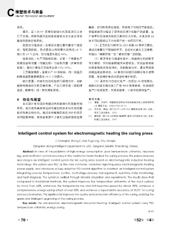 Key words: tire vulcanization; electromagnetic induction heating; intelligent control system; fuzzy PID;