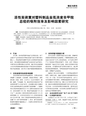 引用论文 :王首洋 . 活性炭装置对塑料制品业低浓度非甲烷总烃的吸附效率及影响因素研究 [J]. 橡塑技术与装备,2026,