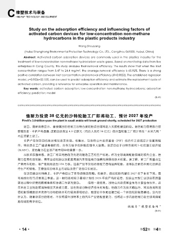 Key words: activated carbon adsorption; low-concentration non-methane hydrocarbons; adsorption