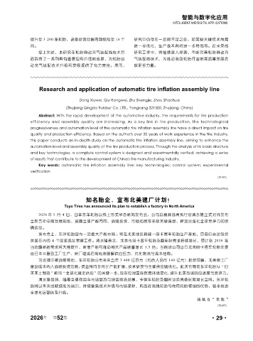 面取得了一系列具有重要应用价值的成果,为轮胎自 气装配线技术,为推动我国轮胎行业的高质量发展贡