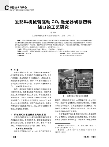 关键词 : 发那科机械臂 ; CO 2 激光切割 ;塑料浇口 ;轨迹规划 ;工艺参数优化
