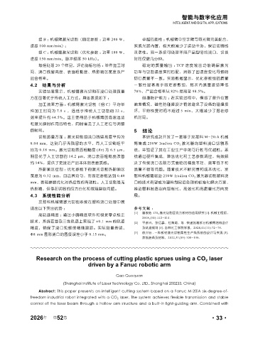 件加工时间为 7.8 s ,远低于传统人工切割的 22 s, 坏,平均恢复时间不超过 5 min,大幅减少了潜在停